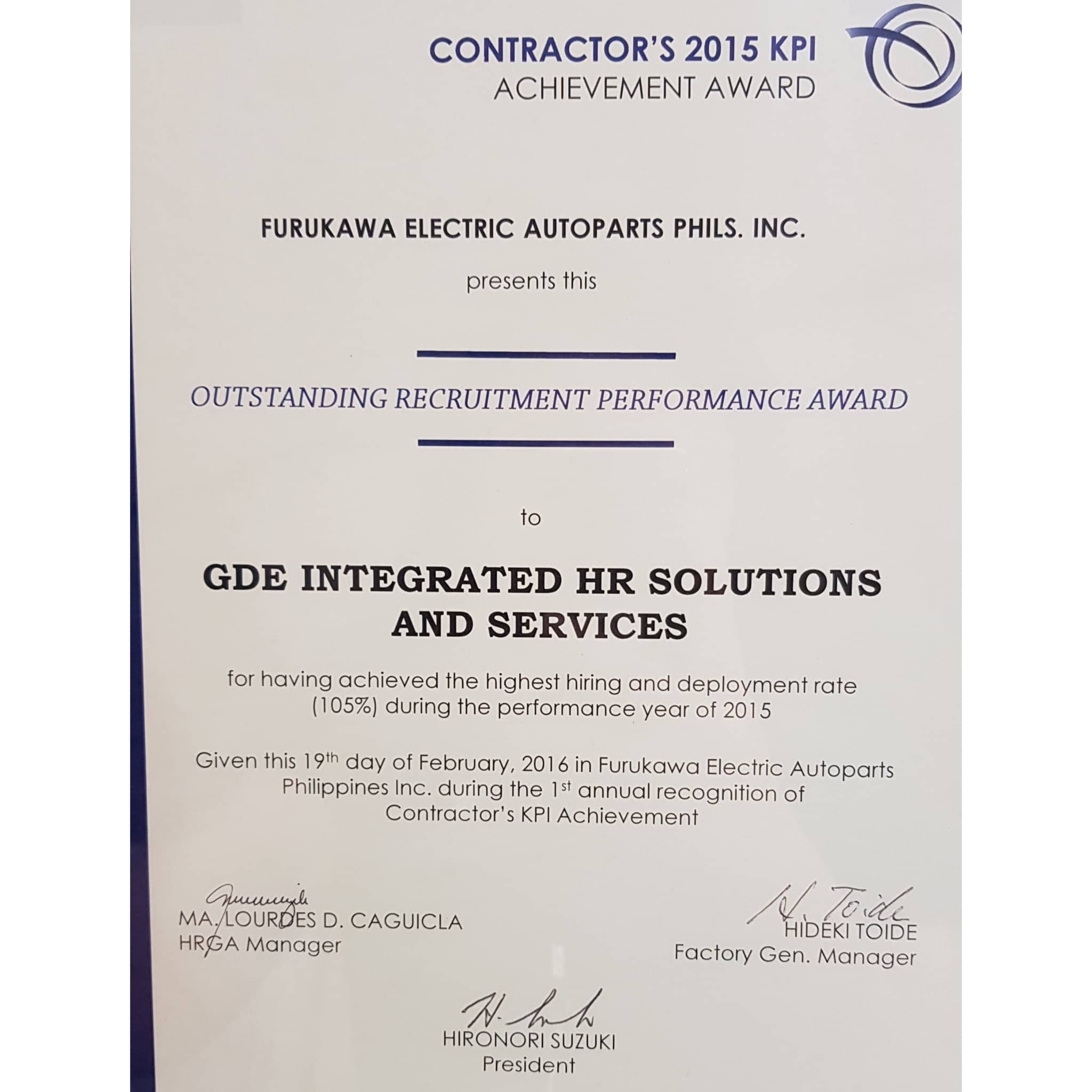 OUTSTANDING RECRUITMENT PERFORMANCE AWARD