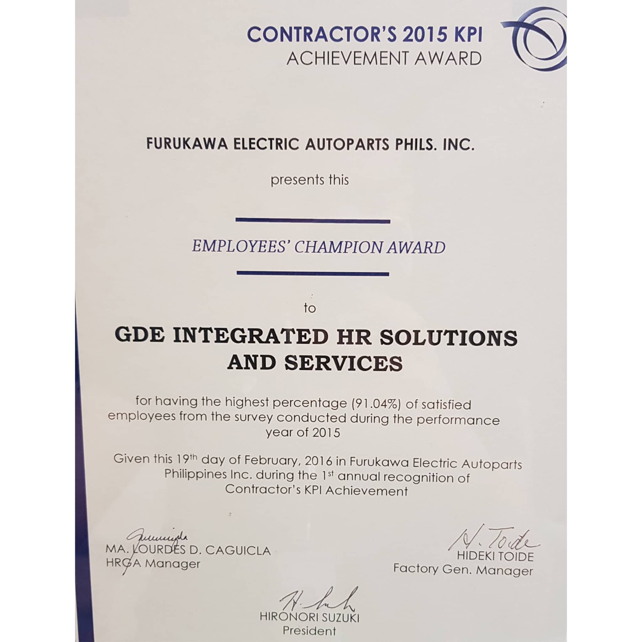 EMPLOYEE'S CHAMPION AWARD