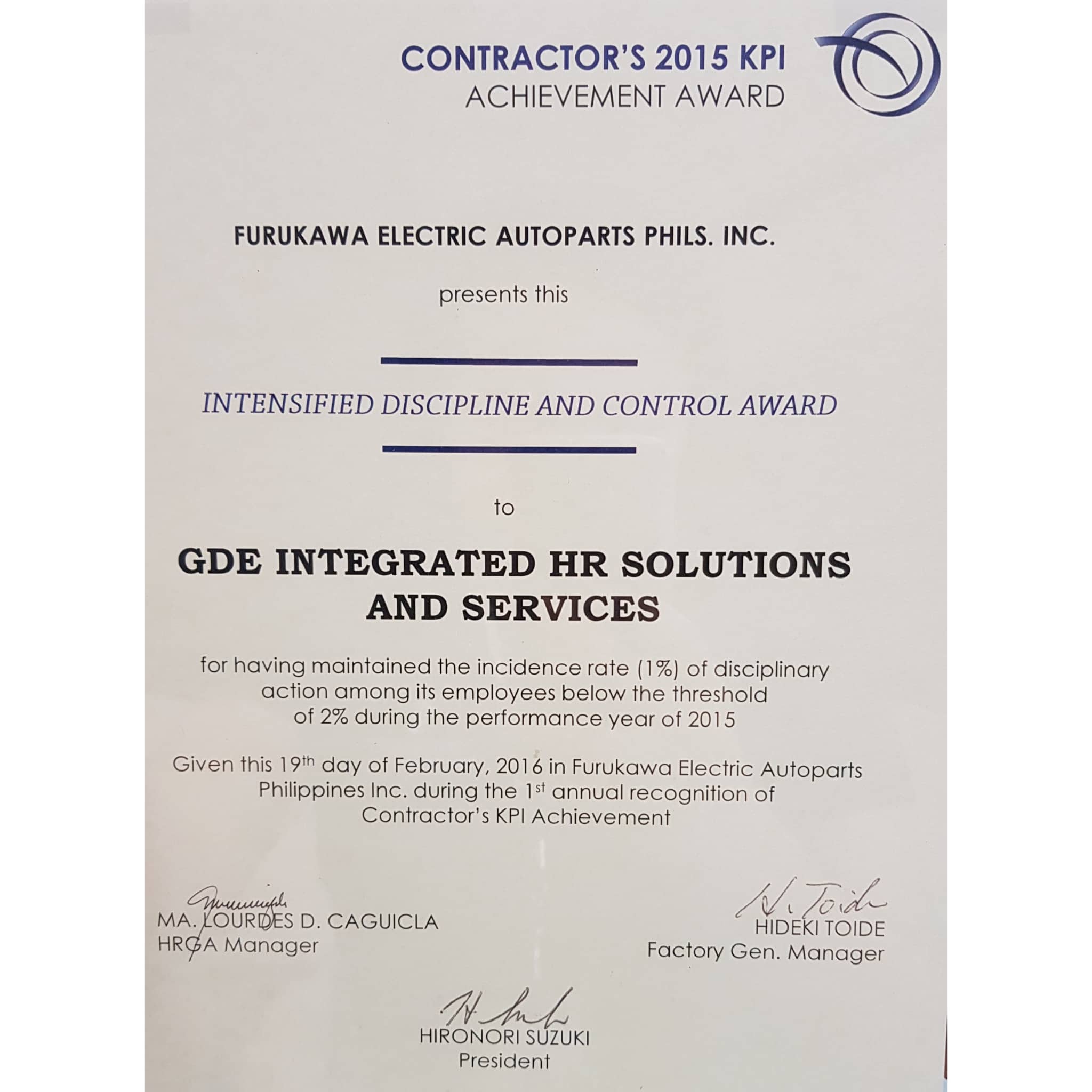 INTENSIFIED DISCIPLINE AND CONTROL AWARD